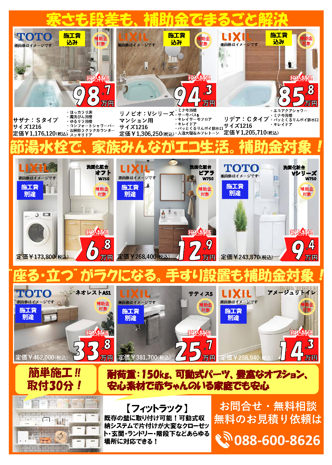 補助金を活用してお得にリフォームも可能ですので、ご相談ください。